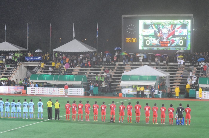 The Final started play in the rain and was abandoned after about 20 minutes. Play was postponed for one hour . As the conditions had not improved, the match was declared a draw with India and Korea sharing the title. This was the first time in the history of the event that rain has caused the final to be called off part way through.
